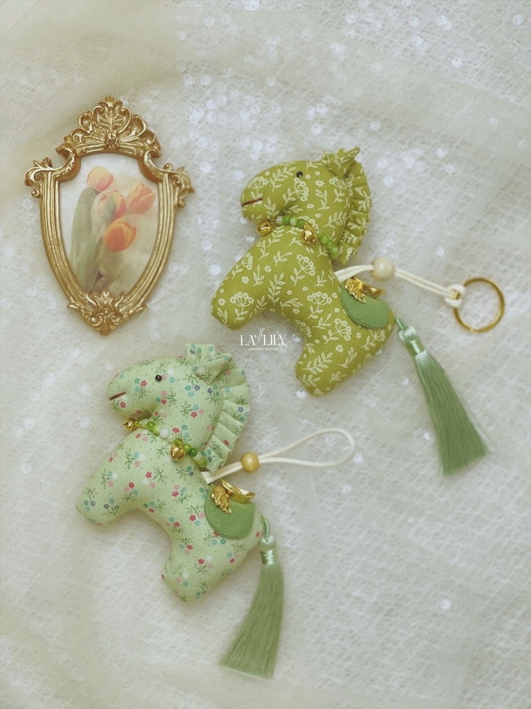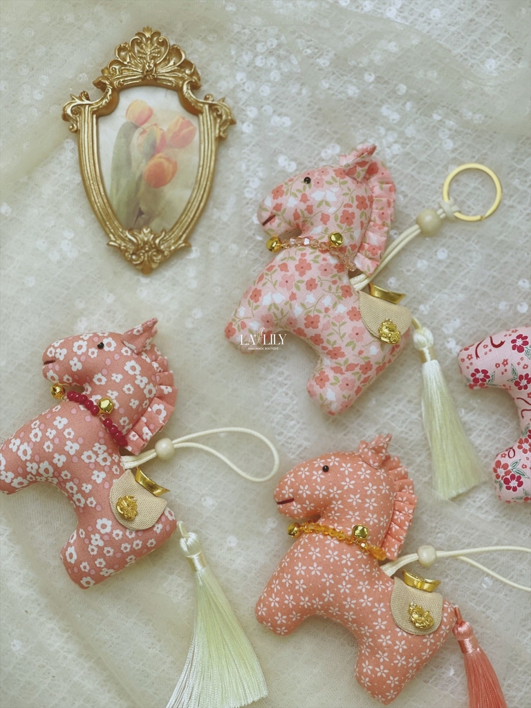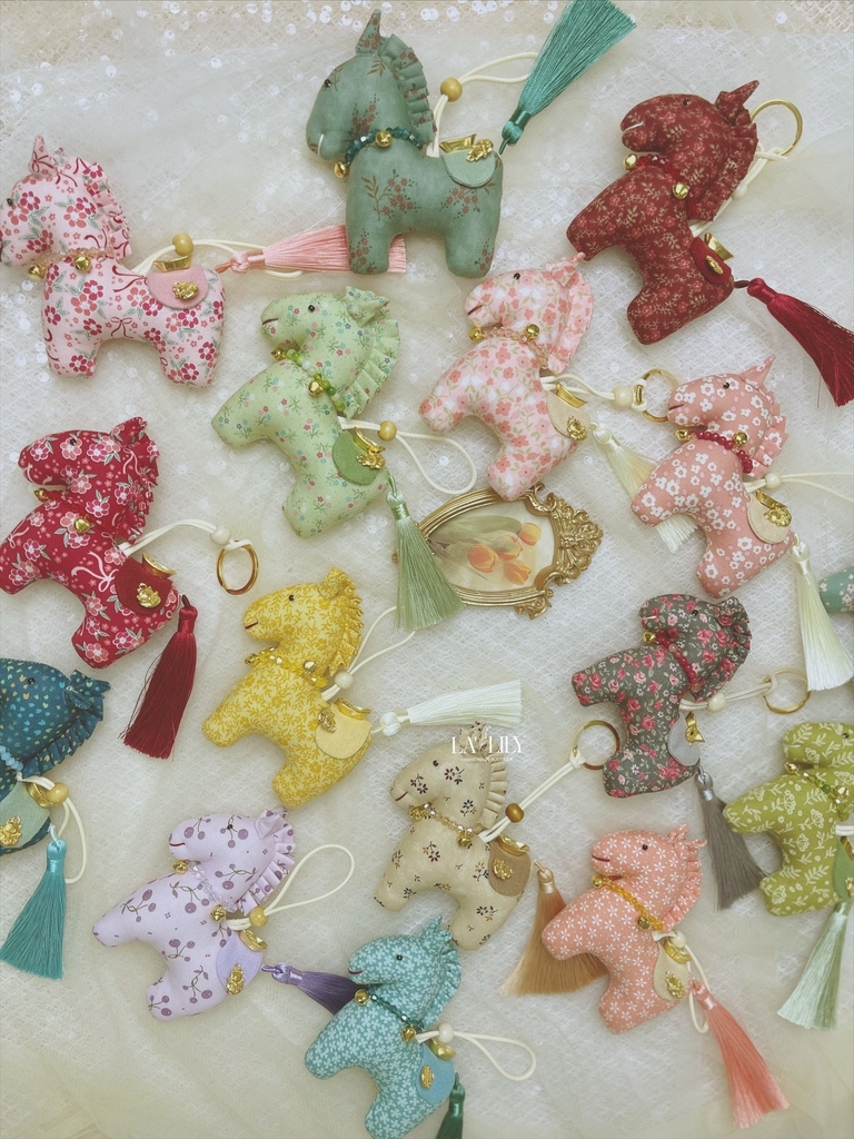 👑Charm: chuông mạ vàng, đồng xu tài lộc, mèo may mắn, cườm đá, pha lê.